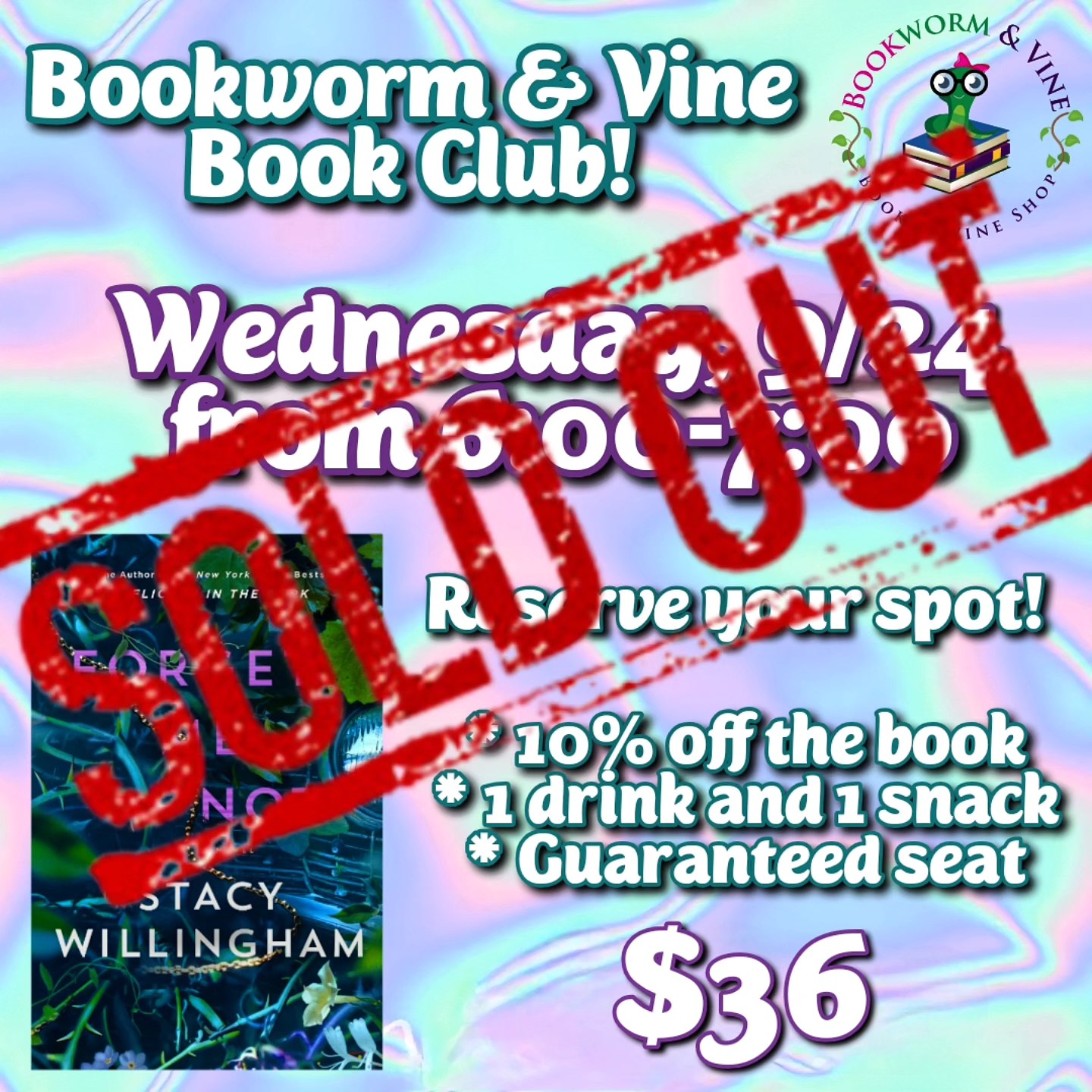 We announce our book club and wine tastings once a month on our Facebook, Instagram, and Bookworm & Vine website. We sell out quickly, so make sure you’re following our social media pages for the announcements! We do not have a registration/wait list and do not send notification emails for the events. The tickets go to the first customers who call and book their spot after the announcement is made. You can join our Wine Club at any time. Please note that tickets are non-refundable and non-transferable. ![]()